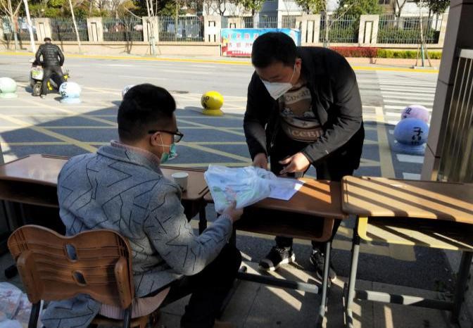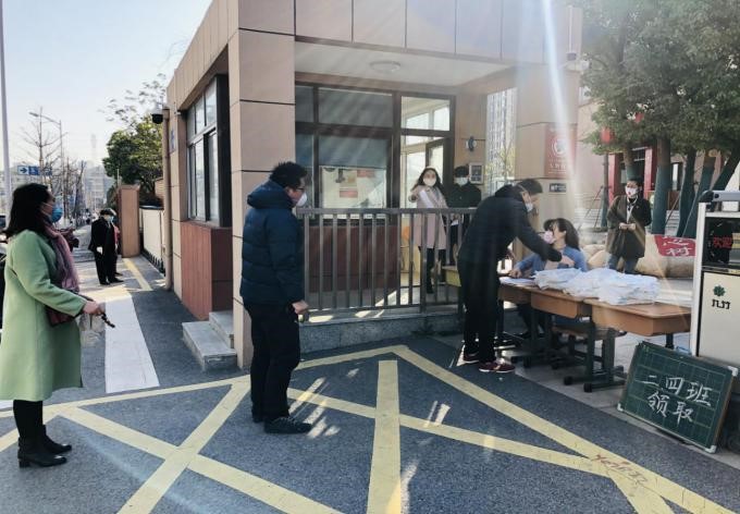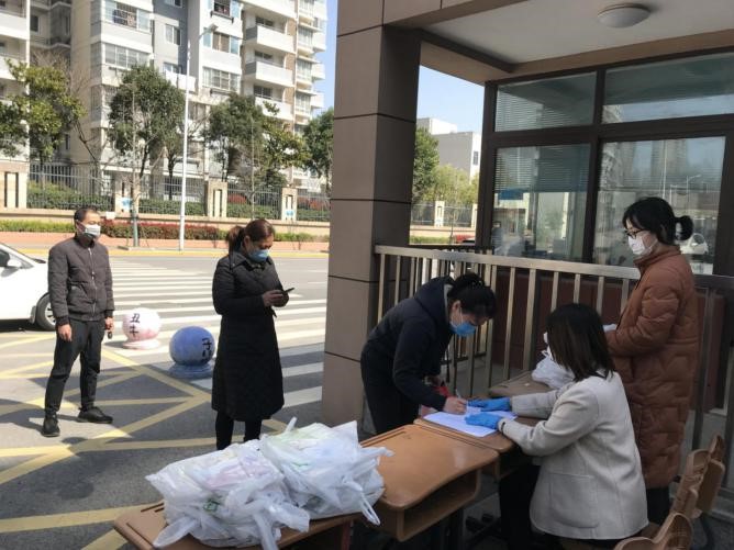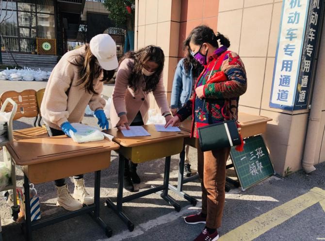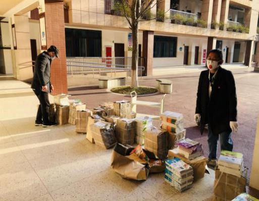 为了能够准确及时地把教材送到学生手中,减少师生与外界过多的接触,各班班主任提前一天开始积极行动起来,利用班级群这一平台,与各位家长做好沟通与交流,最终确定各班领取地点及领取时间。疫情防控放首位,为了避免人员聚集,学校按年级分时段,按班级分地点发放的原则,以现场发放为主,邮寄为辅等方式将新学期课本发放给学生。教师们写好班级序号和温馨提示语,重申安全防护注意事项,从场地消毒、口罩佩戴、体温测量等各个环节严格把关,尽量做到无接触发放、错峰发放,避免人员聚集“扎堆”领书现象,确保师生安全。