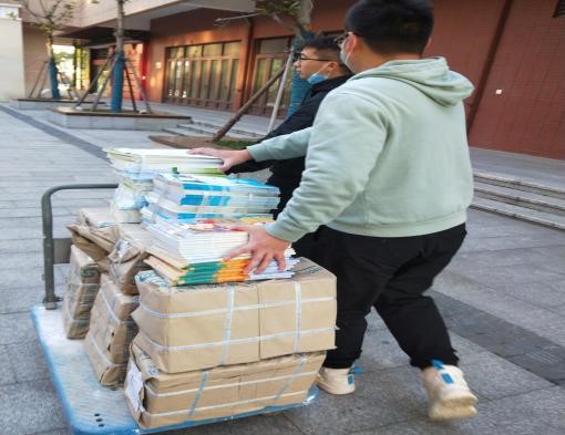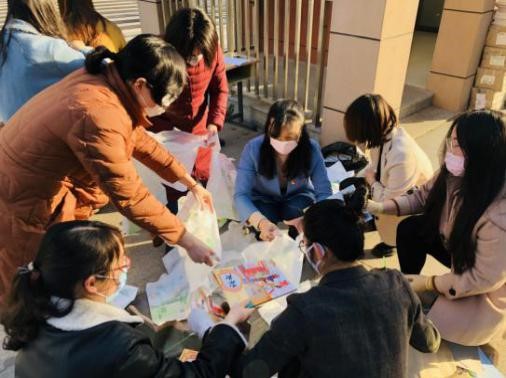 本次活动共计18人克服困难准时返岗,各教师佩戴好口罩,经过体温测量,询问登记后进入校园。上午7点,全体人员到校按年级搬运书本,手提抬挪,拆包分拣,老师们将书本分门别类放好,按册装袋,每个年级书本之间间隔1米。一个多小时的初步准备,每个人都是大汗淋漓,但笑容灿烂,不惧苦累。